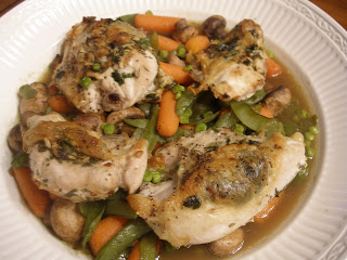 We were not disappointed with this menu. The best description is spring on a plate. For the main course we had Herbed Chicken with Spring Vegetables. The chicken was a bit step intensive to make but well worth it. I had to make a few substitutions for the vegetables as Whole Foods hasn't quite caught up with my excitement for spring! The whole dish was wonderfully flavorful. The vegetables were really nice and sweet and balanced the dish well. This dish would make a beautiful presentation for company.